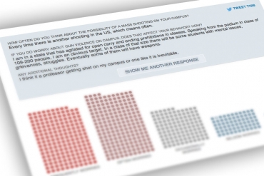 Mr. Snow’s presentation, available here in full, covered the finer points of the campus-carry law — including information about what professors can and cannot say about guns in their classrooms, a timeline of the state’s law governing concealed carry on campuses, and different approaches to firearms for faculty members to take in their course syllabi.