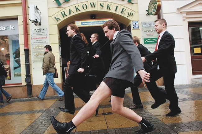 On November 19, 2009, students and fans silly-walk through Lublin, Poland, in celebration of the 40th anniversary of Monty Python'sFlying Circus.