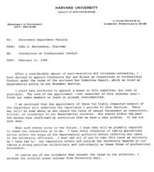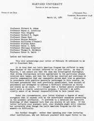 View full documentThe case had reverberations throughout the field, and some colleagues rushed to her defense: A dozen Latin American-studies scholars from various universities wrote to Bok and Rosovsky in February 1984 about Karl's case, saying they could not recommend that any of their students attend Harvard until there was "absolute assurance that they will not face undue risk of harassment." In a response to the scholars, Rosovsky wrote that their letter "displays a degree of moral arrogance that is unusual even by the unfortunate standards prevailing in the academic profession. It pretends to a detailed and objective knowledge of what happened here that you plainly do not have." When contacted recently, Rosovsky declined to discuss any individual cases of harassment, though he said that “it may be handled better today."
